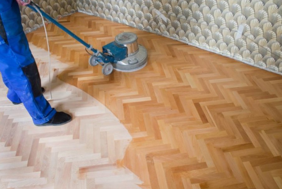 Нужна шлифовальная машинка для основной поверхности, кромочная машина для плинтусов и набор абразивов разной зернистости. Также пригодятся шпаклёвка по дереву, грунтовка и финишное покрытие: лак или масло в зависимости от желаемого внешнего вида.