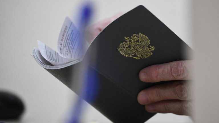 Сотрудник Центра занятости населения держит в руках трудовую книжку посетителя. Архивное фото