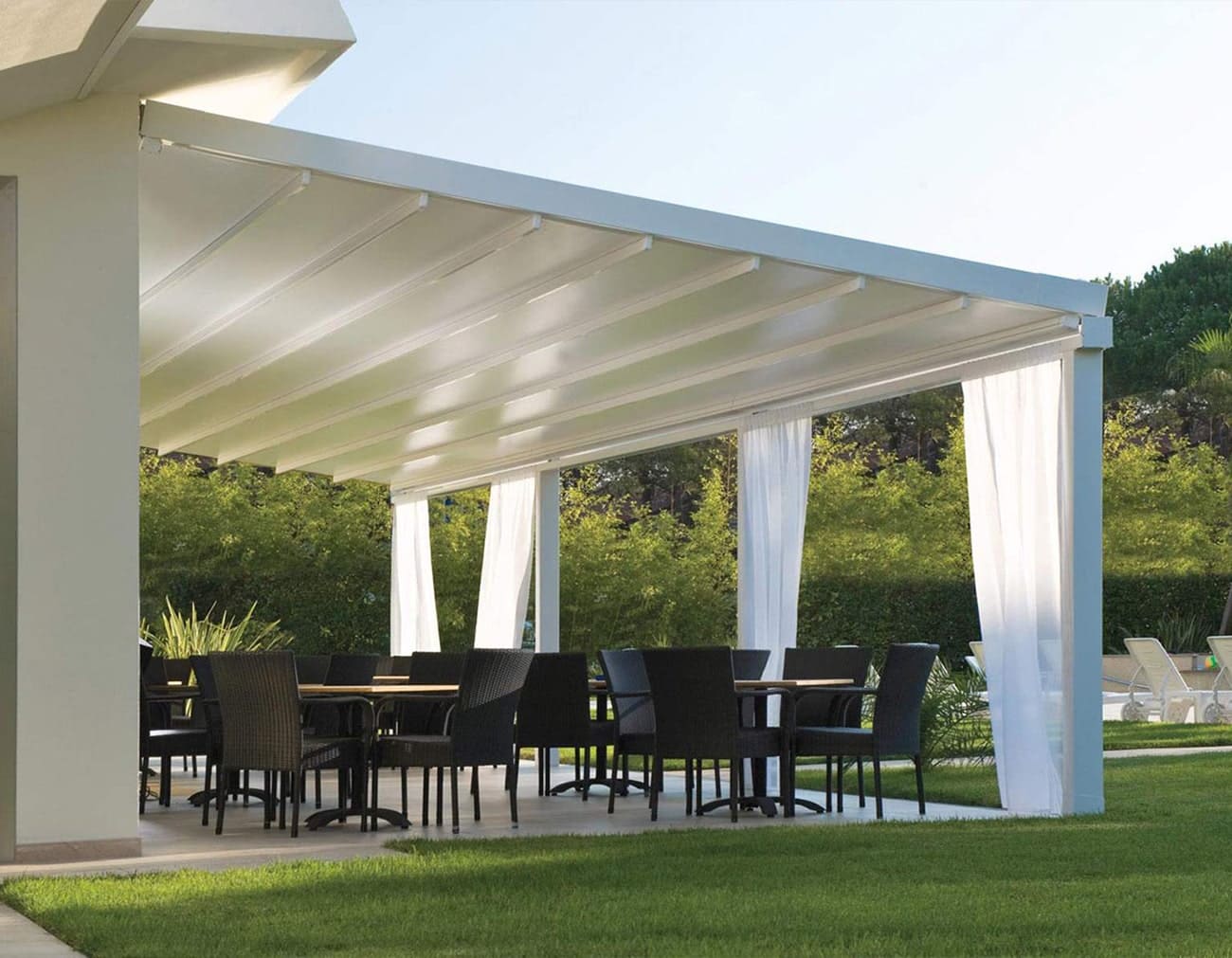 Тентовая пергола «Comfort House» бывает разных дизайнов и стилей, которые соответствуют различным эстетическим предпочтениям и потребностям ландшафта.