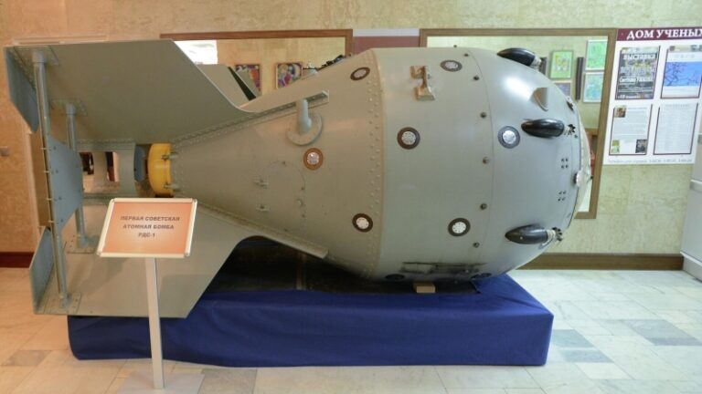 Первая советская атомная бомба РДС-1 в музее Российского федерального ядерного центра – Всероссийского научно-исследовательского института экспериментальной физики (РФЯЦ-ВНИИЭФ) в Сарове. Архивное фото