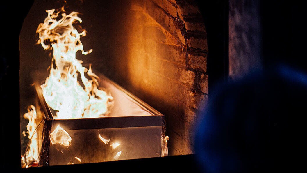 Гроб кладут либо в транспорт, либо в лифт, где после всего отправляют в транзитное помещение и спустя какое-то время в печь. Люди, которые были на церемонии уходят. Данная процедура занимает около тридцати минут, но также может намного больше.