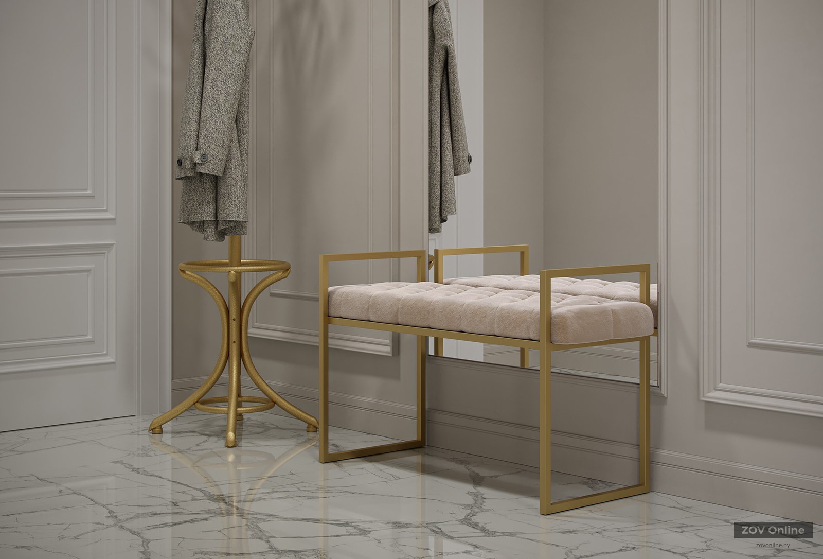 Дополнительно может быть предусмотрена спинка, подлокотники, выдвижные ящики для хранения аксессуаров и важных мелочей. Часто мебель комплектуется специальным отсеком под откидным сиденьем, куда можно складывать обувь. Аналогичным образом используются и встроенные полки.