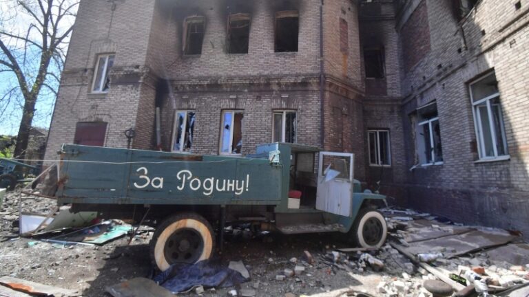 Поврежденные экспонаты на открытой территории во дворе Мариупольского краеведческого музея. Архивное фото