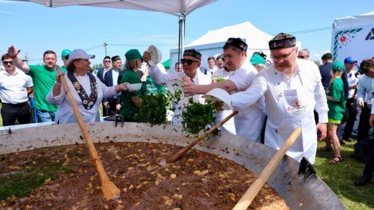 Приготовление самого большого азу по-татарски на Сабантуе в Барде. Архивное фото