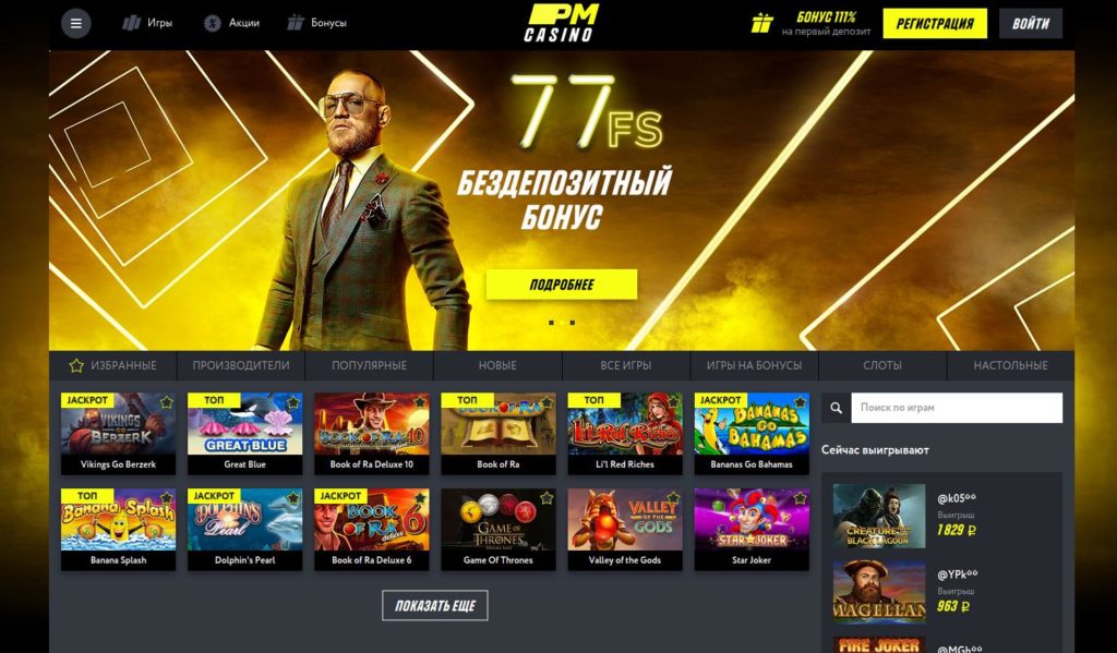 ПМ Казино – это один из самых, пожалуй, удачных выборов для настоящих азартных игроков-гэмблеров, которые разбираются в приоритетах лояльных условий игры, в качестве софта, и реальных возможностях участвовать в абсолютно честных акциях, и бонусных программах!