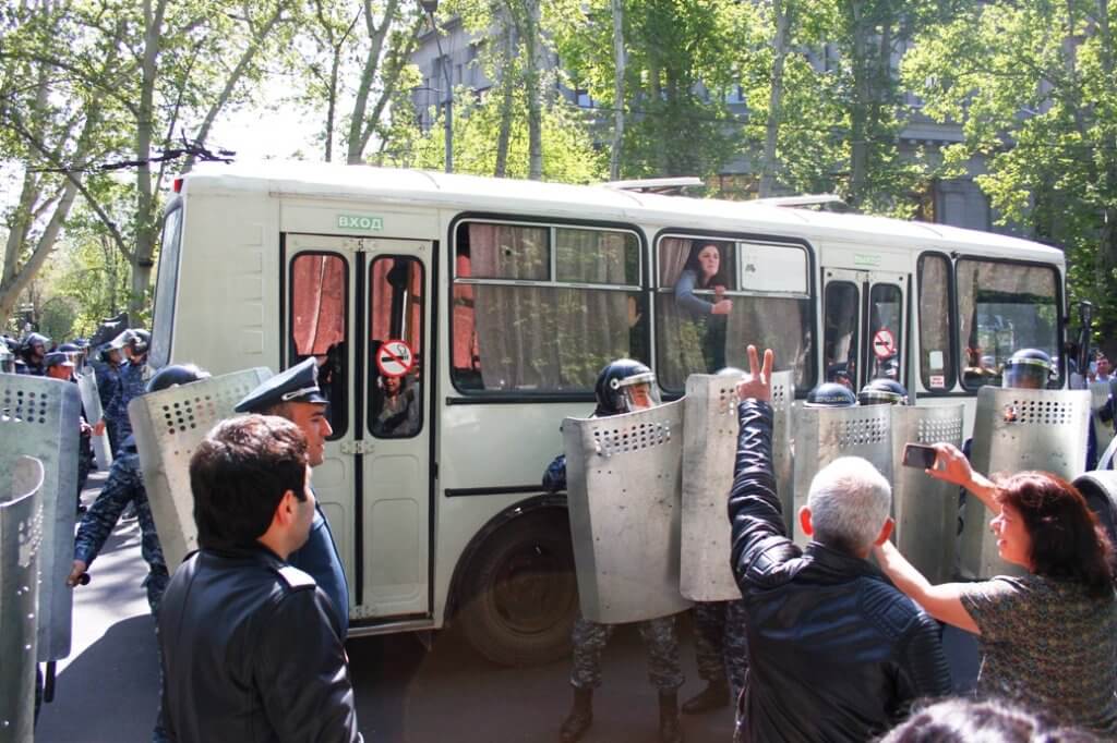 На улице Аршакуняц задержали другую группу активистов, нескольким из них удалось убежать от полицейских, они пришли и присоединились к своим товарищам, находящимся на проспекте Тиграна Меца. В настоящий момент активисты движутся к площади Республике, где будут ждать Никола Пашиняна.