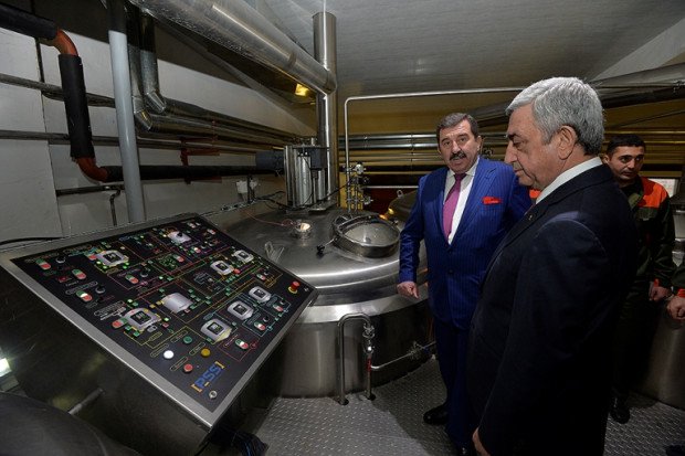 Президент Республики в сопровождении министра экономики, руководства завода и гостей совершил экскурсию по цехам нового завода, ознакомился с осуществлёнными на принадлежащем компании «А. и Т. Акобяны» пивном заводе «Дилижан» работами, реализованными инвестициями и созданными рабочими местами. Президенту доложили, что общая стоимость инвестиционной программы на заводе производительной мощностью 10 млн литров составила 2,5 млрд драмов. Завод, строительство которого началось в апреле 2013 года и завершилось в сентябре 2017 года, даёт продукцию с 15 августа текущего года.