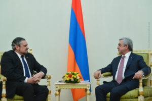 Как сообщает пресс-служба президента, глава государства приветствовал гостя и выразил надежду на то, что его первый визит в этой должности в Армению придаст новый импульс развитию двусторонних отношений. Подчеркнув, что нет каких-либо ограничений для развития отношений, президент отметил, что Армения готова укреплять двусторонние отношения как в двустороннем, так и многостороннем форматах.