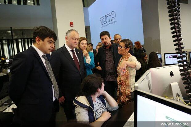 Президенту Молдовы Игорю Додону, в рамках визита в Армению 9 ноября, в ереванском центре инновационных технологий «Тумо» показали антикоррупционную игру, созданную учениками и преподавателями центра.