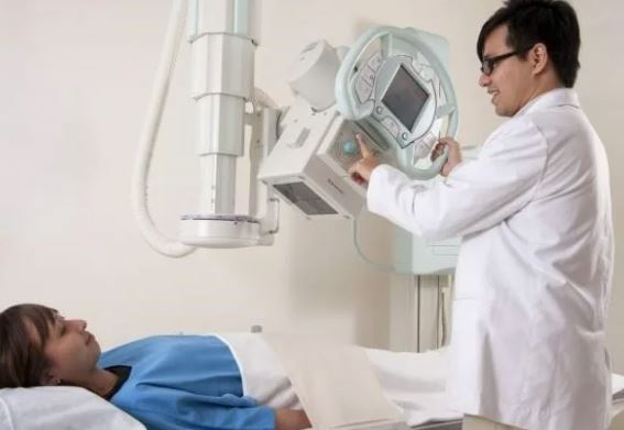 - Пациент снимает металлические украшения и ложится на рентгеновский стол.