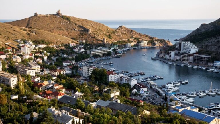 Вид на Балаклавскую бухту и крепость Чембало в Балаклаве. Архивное фото