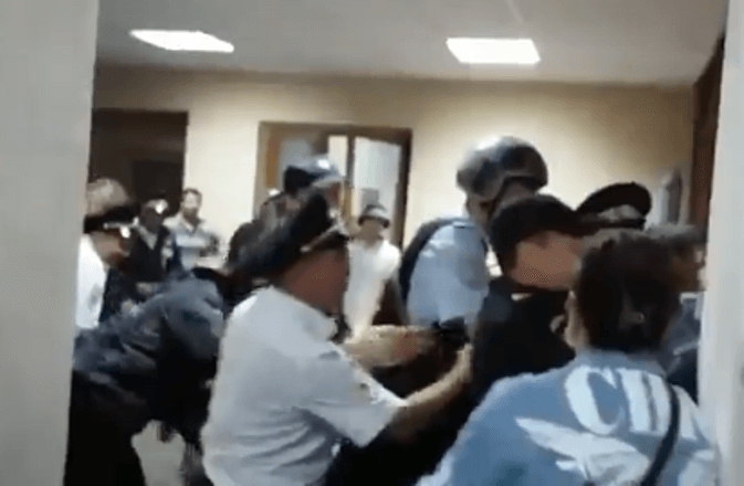 Как передает znak.com, на видеозаписи, опубликованной в группе «ВКонтакте» «ПРАВсоюз КАВКАЗ», видно, как сотрудники полиции начинают насильно задерживать посетителей.