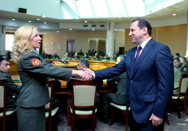Как сообщили в пресс-службе Минобороны, министр Давит Тоноян подчеркнул важность академического образования для служебного продвижения и смены поколения офицерского состава.