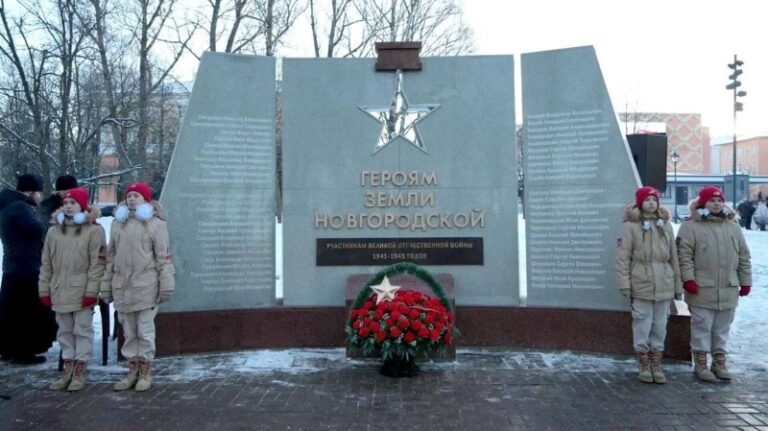 В субботу отмечается 80-летие освобождения Новгорода (с 1999 года — Великий Новгород) от немецко-фашистских захватчиков. Памятник Героям Советского Союза – уроженцам Новгорода и Новгородского района установлен Российским военно-историческим обществом (РВИО) в рамках нацпроекта «Культура». Автор, победитель творческого конкурса, — архитектор Константин Фомин (Москва). Скульптура представляет собой четыре закругленных гранитных пилона с нанесенными фамилиями Героев Советского Союза. «»С инициативой создания скульптурной композиции выступили жители Новгородской области и губернатор Андрей Никитин. Увековечено 98 имен новгородцев и уроженцев других мест за совершение героических подвигов в годы Великой Отечественной войны», — говорится в сообщении.