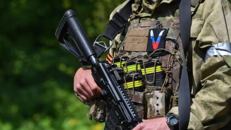 Нашивка со знаком «V» на форме военнослужащего разведгруппы ВС России. Архивное фото