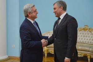 Парламентарии Армении и России планируют расширить круг отношений и сотрудничества, заявил прибывший в Ереван с официальным визитом председатель Госдумы РФ Вячеслав Володин на встрече с президентом Армении Сержем Саргсяном.