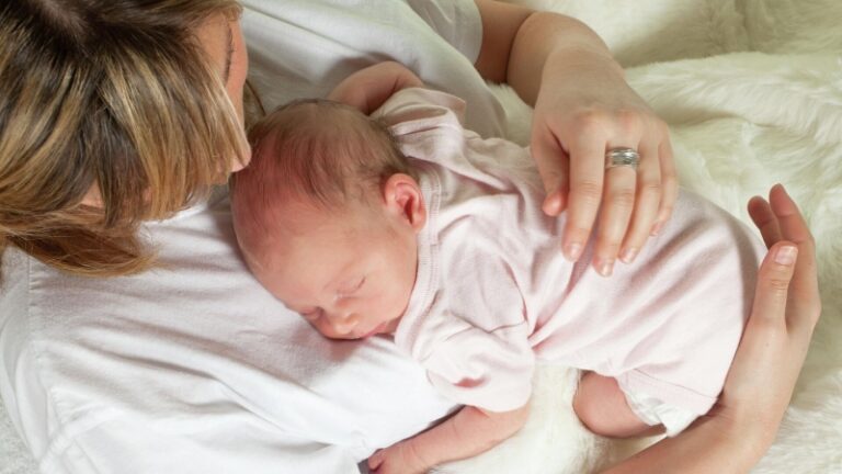 Взрослый рядом с спящим младенцем